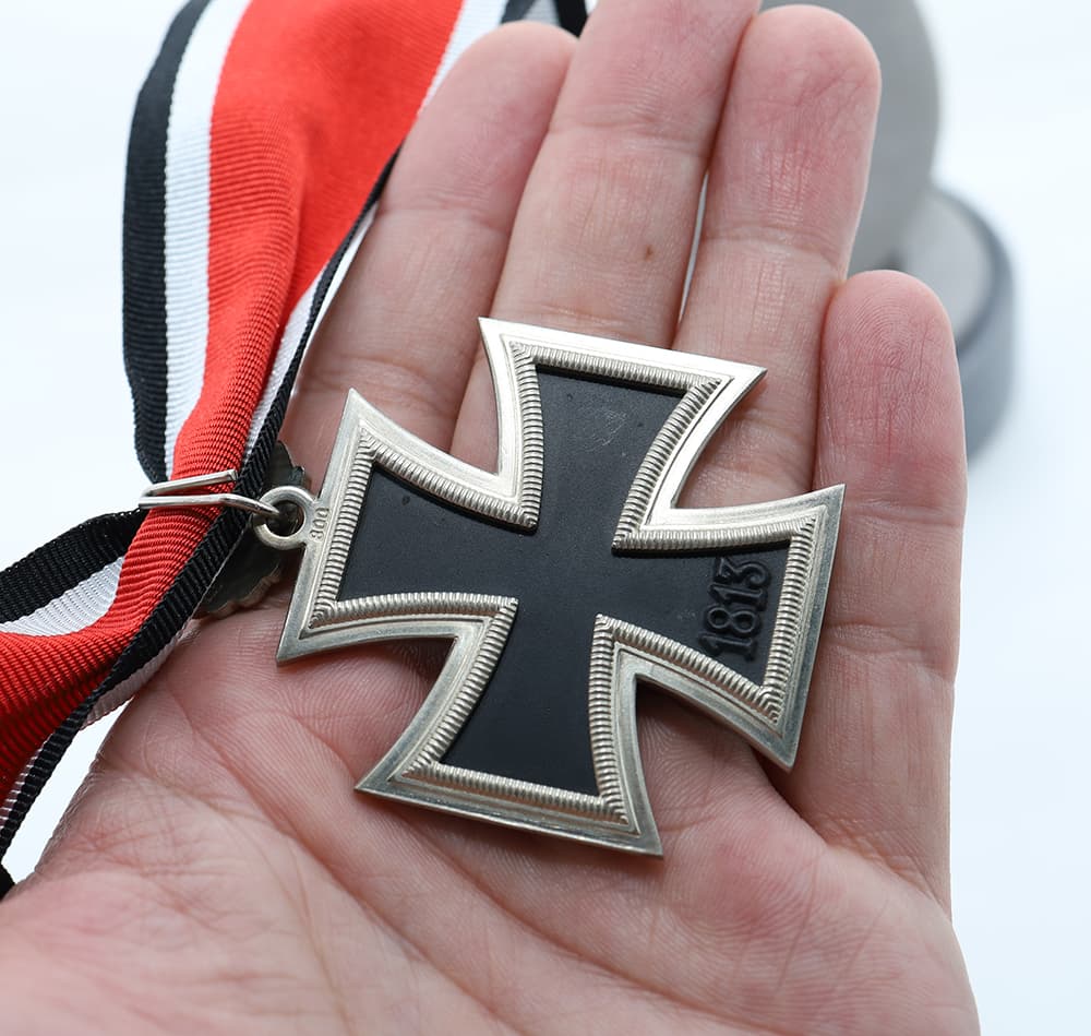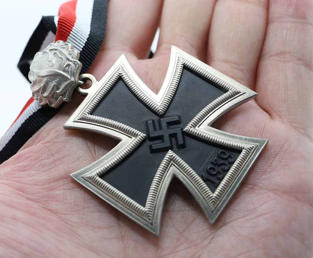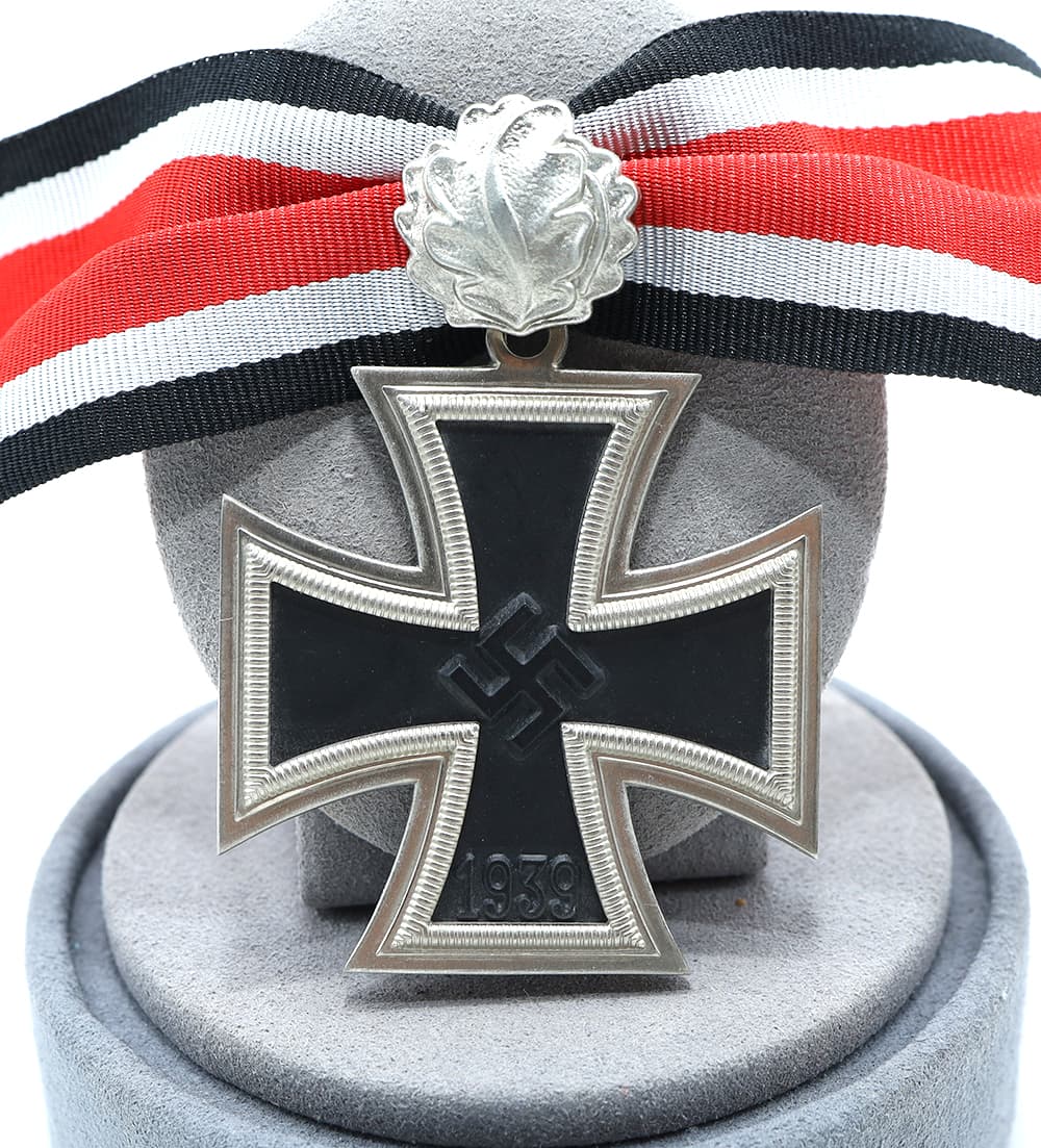3-piece Knight's Cross with Oak Leaf (Nickel Silver) replica. Frame made with nickel silver,using silver brazing for welding Iron center Oak Leaf made with nickel silver
