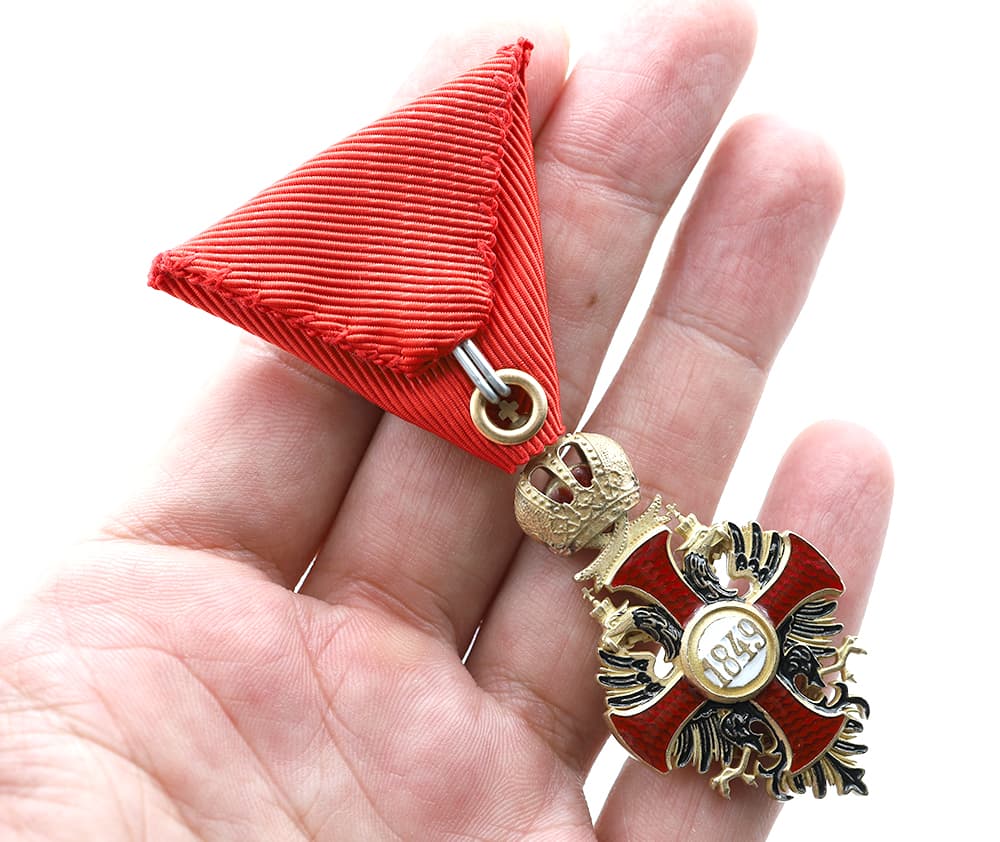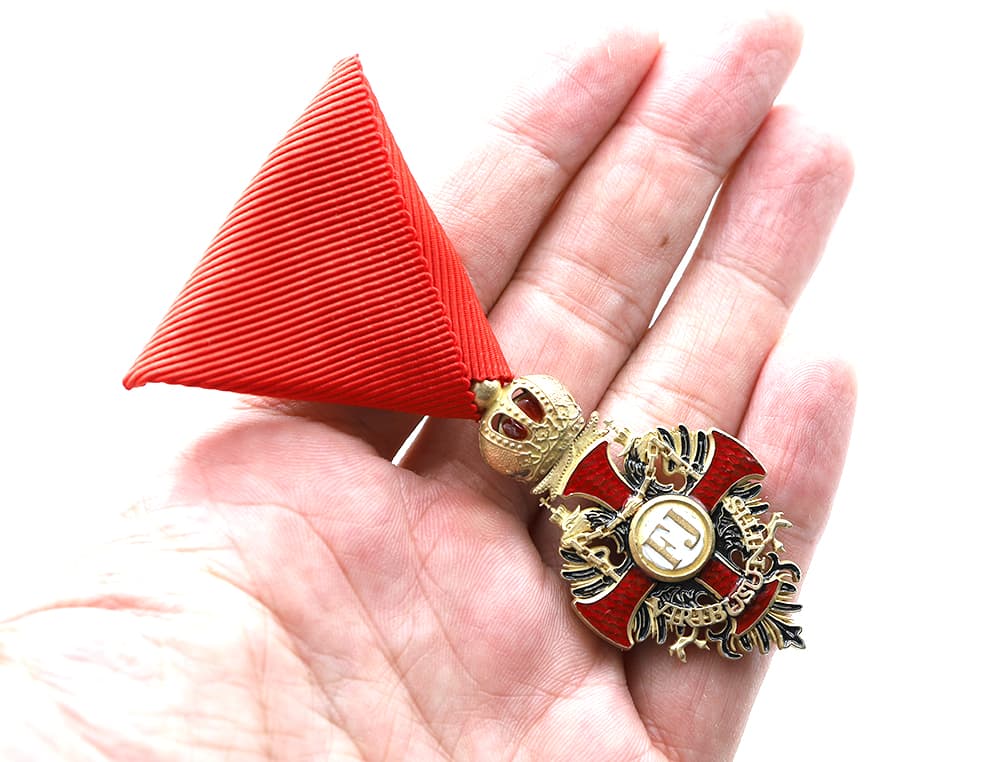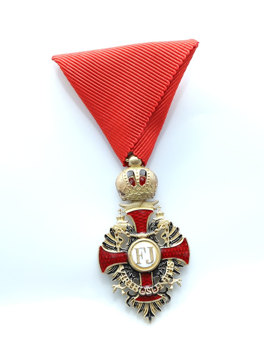 Knight's Cross of the Order of Franz Joseph on the Red Ribbon replica,featuring sharp details.