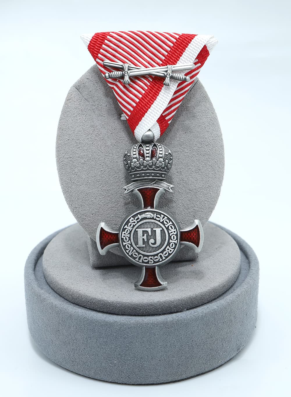 Silver Cross of Merit with the Crown and Swords (Austria-Hungary) replica,featuring sharp details.The swords denoted meritorious service in the face of an enemy